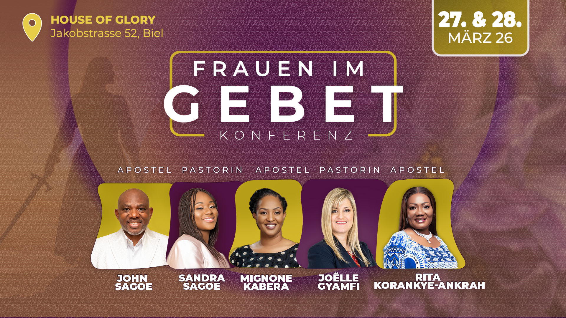 Freue dich auf stärkende, prophetische Inputs von erfahrenen Aposteln und Pastorinnen, intensive Gebetszeiten und eine Atmosphäre, in der Ermutigung, Heilung und neue Hoffnung Raum bekommen.